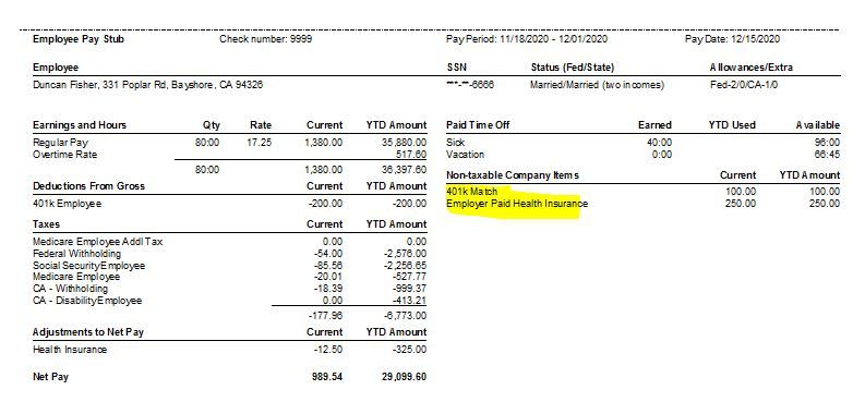 Employer Paid Healthcare On Paystub